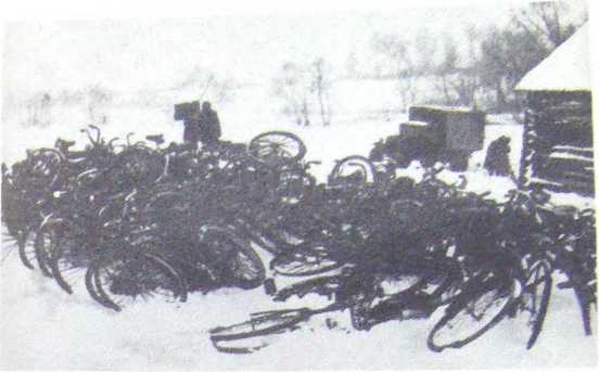 Дороги, по которым нельзя было проехать на велосипедах, стали лыжными трассами. На фронт уходят батальоны лыжников.