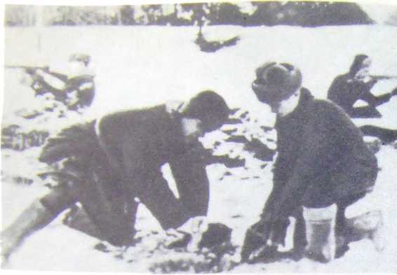 Партизаны Лотошинского отряда минируют дорогу. Справа Герой Советского Союза комсомолец Илья Кузин.