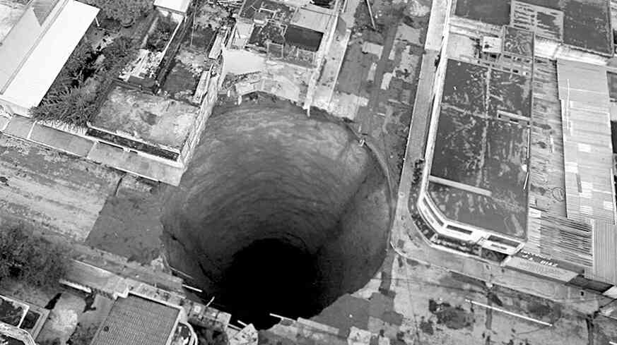 Гигантская воронка в Гватемале имела глубину 150 и диаметр 20 метров. Во время образования провала погибло несколько человек и уничтожено с десяток домов. По словам местных жителей, примерно с начала февраля в районе будущей трагедии ощущались подвижки почвы, а из-под земли слышался приглушенный гул.