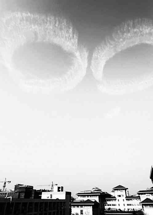 На небе в тот же день появилось гигантских размеров облако в виде колец…