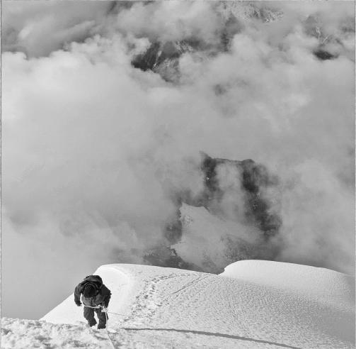 Поднимаясь по кромке хребта, ведущего к вершине, и вдыхая кислород своими измученными легкими, я наслаждался странным и неожиданным чувством полного спокойствия. Мир за пределами моей резиновой маски был изумительно ярким, но не совсем реальным, словно перед стеклами моих защитных очков замедленно прокручивалось кино.