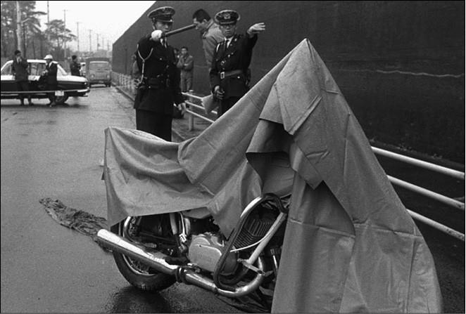 На улице рядом с токийской тюрьмой Футю их остановил полицейский на мотоцикле и попросил выйти из автомобиля. По его словам, в доме менеджера их компании произошёл взрыв, и было получено сообщение о бомбе, заложенной в их автомобиле. Когда они вышли, полицейский начал обследовать автомобиль. В это время из машины повалил дым, и полицейский прокричал: «Все в укрытие! Сейчас взорвётся!» Когда дым рассеялся, ни полицейского, ни денег уже не было.