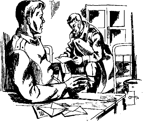 — Вот, товарищ лейтенант, письма. Вам четыре и мне четыре. — Последнюю фразу он произносит с нескрываемым удовольствием. Жучок, кажется, ужасно рад, что ему пришло не пять, не шесть писем, а столько же, сколько и мне. Разделив пачку пополам, он одну половину кладет на тумбочку ближе к моей кровати, другую — ближе к своей.