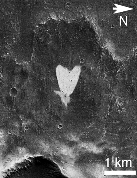 Совсем недавно мир снова всколыхнули новости с Марса. Виртуальные археологи на фотографии аппарата Mars Global Surveyor нашли… разбившийся космический корабль! В Интернете космический корабль назвали «сердечком» из-за схожести форм. Также на фото отчетливо видны следы аварийной посадки, что и позволило сделать вывод, что корабль потерпел крушение.