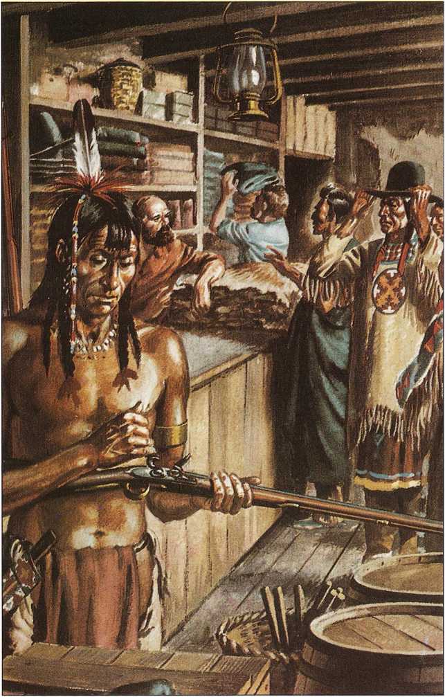 Черноногие покупали ружья у торговцев в факториях, которые находились далеко к востоку от их земель, в районе Гудзонова залива и Великих озер. Это было далеко. Поэтому двум английским торговым компаниям разрешили построить фактории на реке Саскачеван в стране черноногих. Обычно индейцы хорошо уживались с английскими и канадскими торговцами, но не с американскими! Частично это было связано с тем, что американские трапперы приходили с юго-востока, с той стороны, что и злейшие враги черноногих — кроу и шошоны.