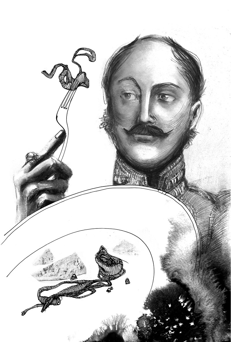 Государь, прочитав в одном из семи томов «Парижских тайн» или «Вечного жида» описание некоего пиршества с указанием блюд и продуктов, на них пошедших, приказал за столом своему обер-кухмейстеру приготовить подобные же блюда, на что повар отвечал: «Это, должно быть, совсем невкусно». – «А ты все-таки приготовь», – сказал Государь, и назавтра получил обед ? la Sue [в духе Сю].