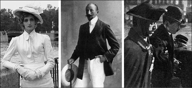 М.Н. Тарновская, П.Е. Комаровский и арестованный итальянской полицией Наумов