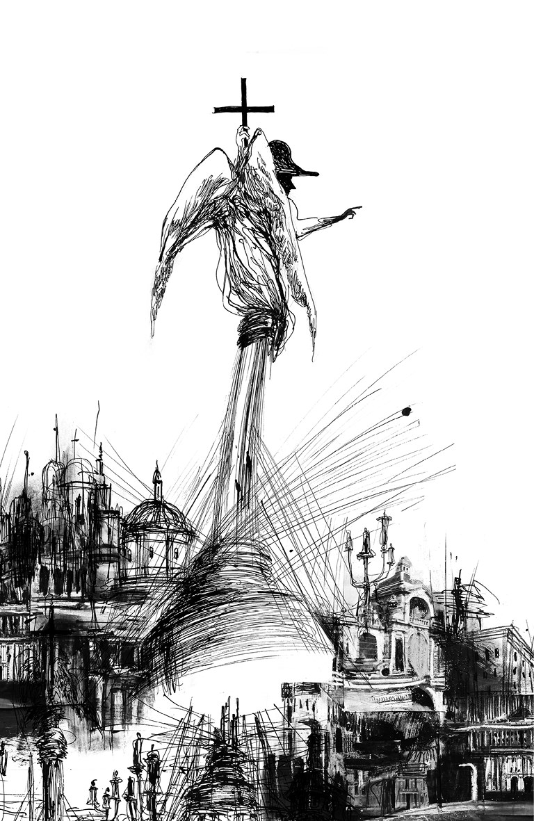 М. Поднебесный 2 сентября вкладывает в уста Петра с Екатериной, наблюдающих за воздвижением колонны «с облачных высот», восклицание: