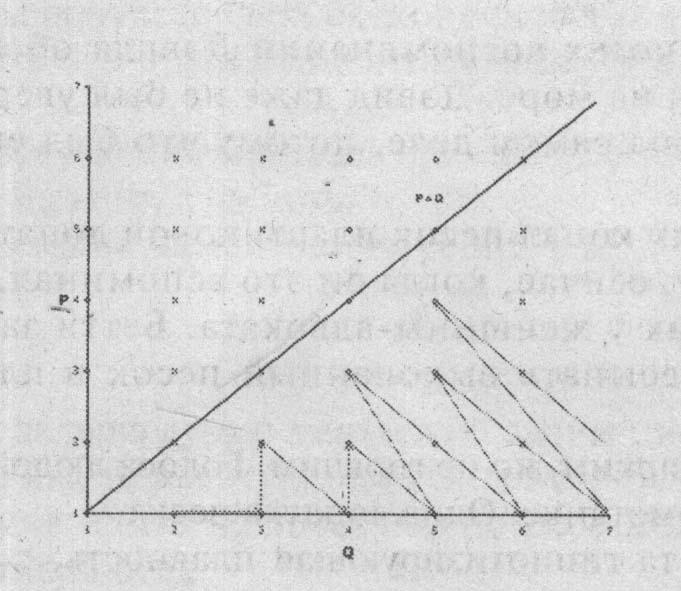 Дэвид сел за стол. Он провел на листе бумаги вертикальную линию, пометил ее низ нулем, а верх — единицей. Затем попытался отобразить последовательность рациональных чисел в интервале от 0 до 1 вдоль зигзагообразного пути парной функции Кантора, проложенного по декартовой плоскости, повторяя то, что рисовала на доске в школе мисс By. Для каждого рационального числа в последовательности он рисовал короткую горизонтальную линию. Постепенно он заполнил всю страницу.