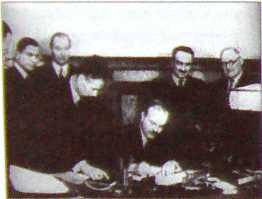 Вслед за кредитным соглашением 23 августа 1939 года в Москве двумя министрами иностранных дел подписывается политический документ — собственно "пакт о ненападении" между Советским Союзом и Германией. Германский вариант договора содержал в преамбуле слова о дружеском характере советско-германских отношений. Сталин их вычеркнул. В августе он счел, что заверения в дружбе для советской и мировой общественности будут слишком неожиданными. Дружба отложена на месяц. Договор о ненападении между СССР и Германией имеет секретный протокол.