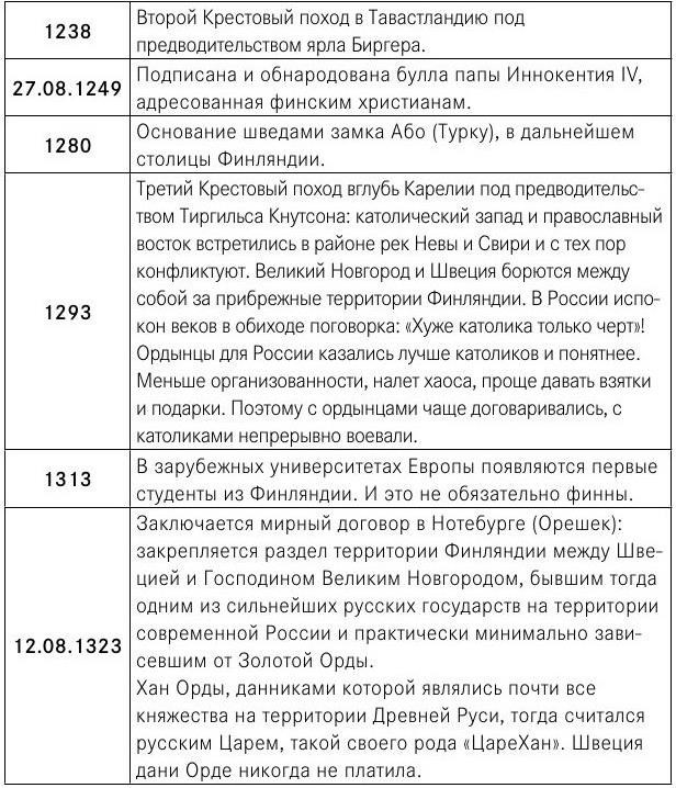 В хронологии указаны события, значимые для финнов и нередко совершенно неизвестные нигде, кроме Финляндии. Не стоит этому удивляться.