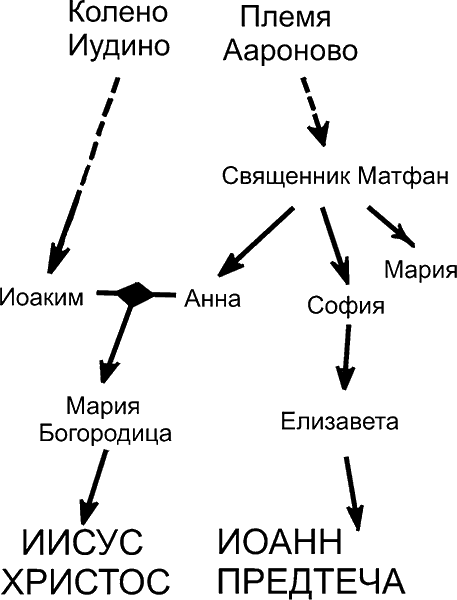 Рис. 1.41. Генеалогическое дерево, показывающее, что Христос и Иоанн Креститель были троюродными братьями. Составлено по [298:1].