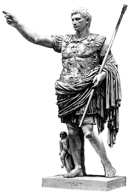 Рис. 149. «Античная» статуя императора Августа Октавиана. Хранится в ватиканском музее. Изготовлена, скорее всего, не ранее XVII века. «Наглядное пособие» к учебнику скалигеровской истории. Взято из [304], т. 1, с. 489.