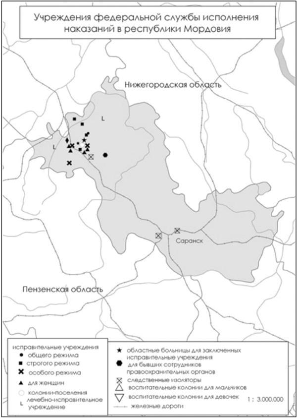 Рис. 2. Учреждения ФСИН в Республике Мордовия