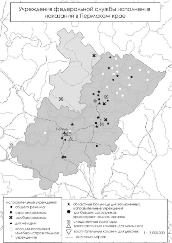 Рис. 3. Учреждения ФСИН в Пермском крае