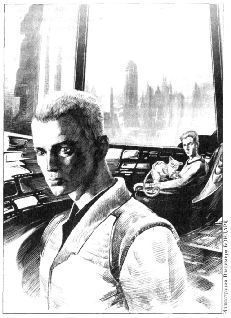 Отвернувшись от окна, Камень делает несколько шагов по толстому кремовому ковру, устилающему пол в его комнатах. (Как странно двигаться так уверенно, не останавливаясь, не нашаривая, куда ступить!) Последние пятнадцать дней он провел, фанатично практикуясь с обретенным зрением. Все обещания доктора сбылись, и это казалось чудом. Сплошное упоение. К тому же его окружала истинная роскошь. Любая еда, какую он пожелает. (Хотя он удовлетворился бы и фрэком — переработанным планктоном.) Музыка, головидение и — самое ценное — общество Джун. Но ни с того ни с сего сегодня он испытывал легкое раздражение. Что же это за работа, которую он должен будет выполнять? Почему он еще не встретился с нанимателем? Он уже начинал спрашивать себя: а вдруг это какой-нибудь сверхсложный обман?