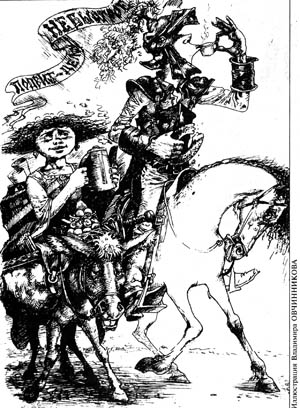 И тронулись в путь — сонный рыцарь на коне да его оруженоска на навьюченном под завязку ослике. Поехали искать великана Анонима Имярековича.