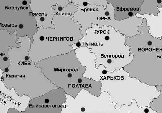 Киевская, Полтавская, Черниговская и Харьковская губернии.