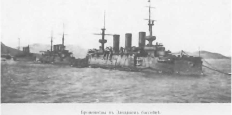 Броненосцы русской эскадры на рейде Порт-Артура.