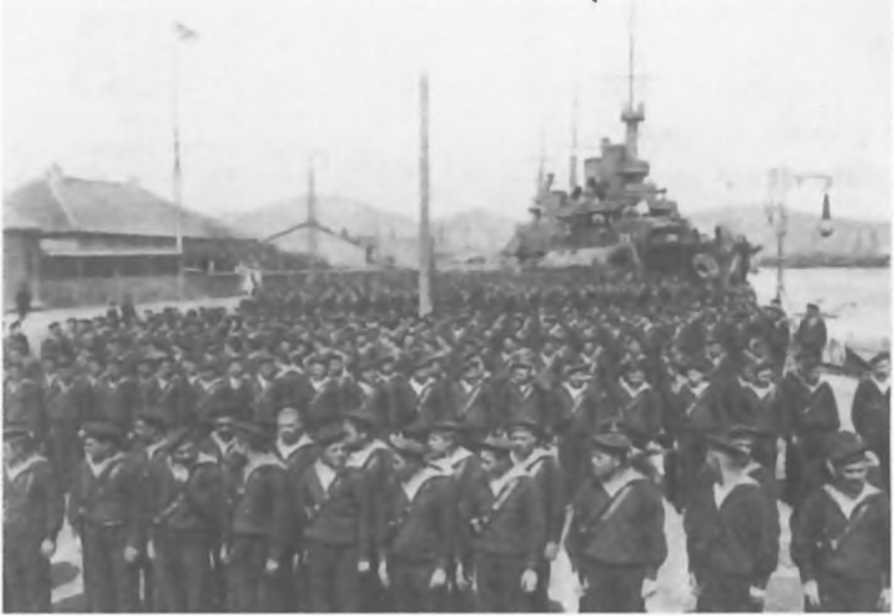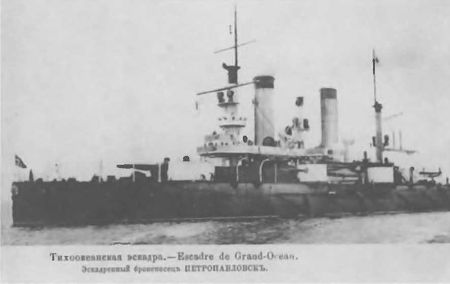 Эскадренный броненосец «Петропавловск» (1894), на котором держал свой флаг командующий флотом вице-адмирал С. О. Макаров.