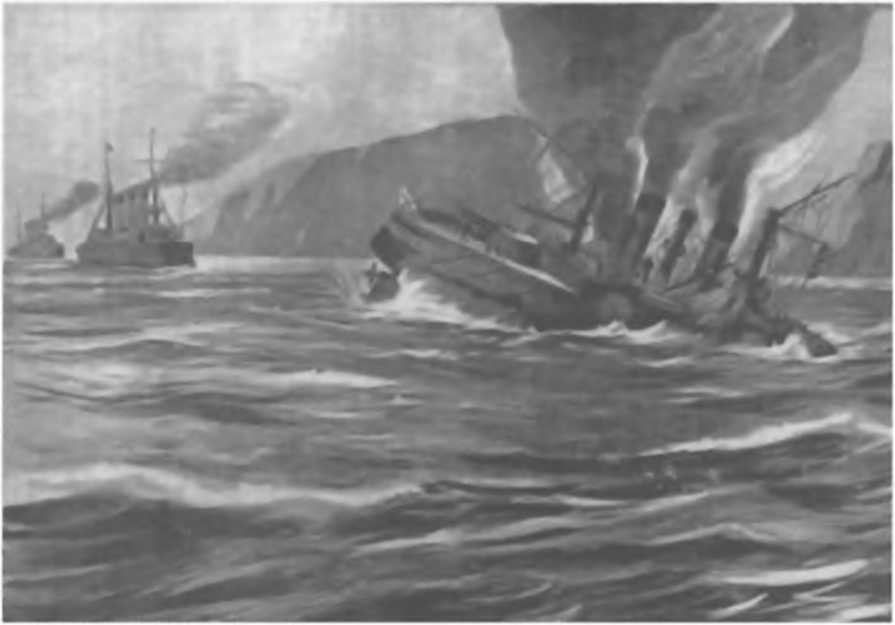 Гибель броненосца «Петропавловск» 31 марта (13 апреля) 1904 г. По рисунку очевидца корреспондента английского журнала «Graphic»