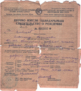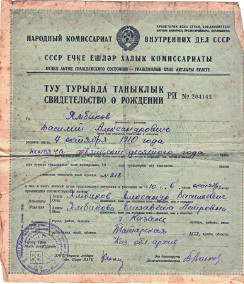 Свидетельство о рождении В. А. Ямбикова