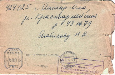 Конверт, в котором пришел ответ на запрос моего дедушки (Н. В. Ямбикова) об отце