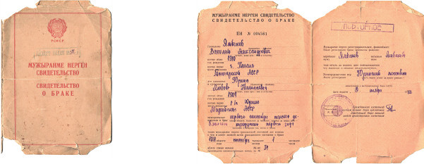 Свидетельство о браке Любови и Василия Ямбиковых