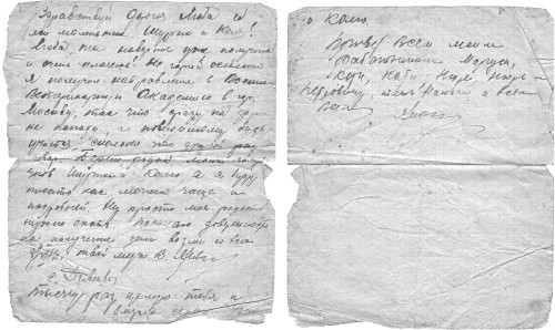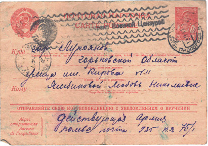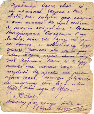 Письмо В. А. Ямбикова с фронта. 1941