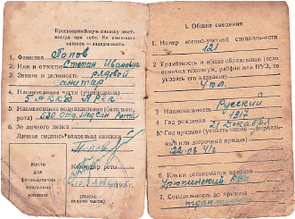 Красноармейская книжка Степана Ивановича Попова