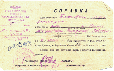 Справка о мобилизации Владислава Тхоржевского