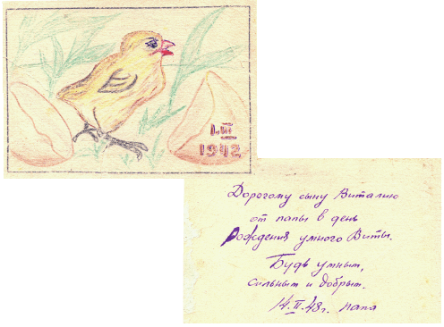 Поздравительная открытка, написана Владиславом сыну Виталию