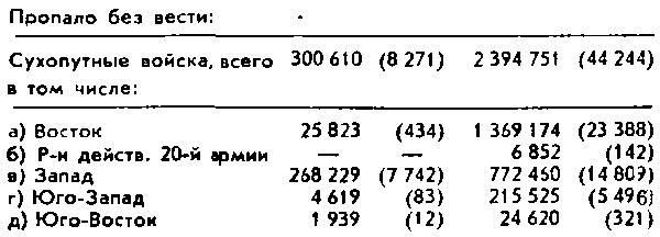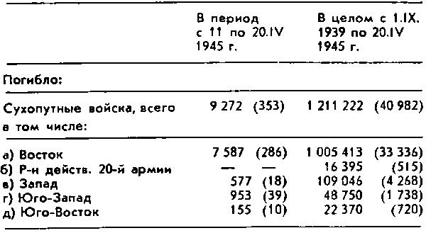 Персональная убыль сухопутных войск [( ) — из них офицеров]