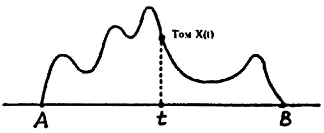 Рис. 6. График объемов глав хроники в зависимости от описываемого года t. По горизонтальной оси отложены годы в хронологическом порядке; по вертикальной — объемы глав (фрагментов) хроники, описывающих какой-либо конкретный год.