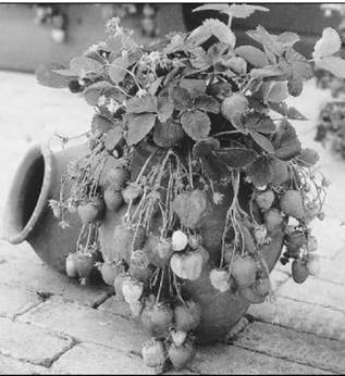 Совсем недавно заинтересовался я еще одной земляничной новинкой – вьющейся, или шпалерной, земляникой, способной давать плоды на очень длинных усах. Если направлять их по проволоке, толстой веревке или лестнице вверх, они способны подняться над землей чуть ли не на метровую высоту. За рубежом, в частности в Финляндии, выращивают ее по типу ампельных растений: сажают в кашпо и подвешивают на открытых верандах или балконах. Подходят для этого такие американские сорта, как Сельва и Мрак. На зиму их приходится убирать в подвал, где при низкой температуре они «впадают в спячку». А вот голландский сорт Эльсанта после непродолжительного покоя уже в конце сентября переношу на балкон городской квартиры.