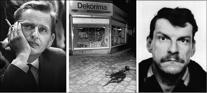 Поздним вечером 28 февраля 1986 года Пальме с женой возвращались из кинотеатра «Гранд», расположенного по адресу Свеавеген, 45, и успели дойти до перекрёстка, граничившего с улицей Туннельгатан. Это был самый центр Стокгольма, и премьер-министр перемещался по нему без телохранителей, тем более что в тот час он был не на работе. Когда супруги Пальме остановились, к ним подошёл незнакомец, два раза выстрелил из револьвера «Смит-Вессон» и ушёл. Это было настолько невероятно, что окружающие просто растерялись.