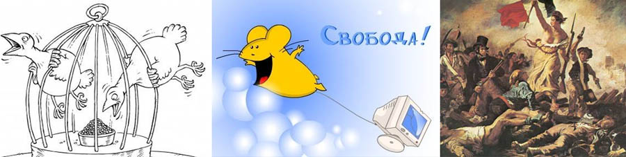 Разговоры о том, что такое Свобода, велись всегда и будут продолжаться до тех пор, пока останется на Земле хотя бы двое говорящих на одном языке индивидуумов, из рода человеческого. Определений свободы было вельми не мало, но самое гениальное на мой взгляд, это определение Спинозы: "Свобода — это осознанная необходимость". Гениальна эта фраза, на мой взгляд по тому, что не несет абсолютно никакой смысловой нагрузки, но на столько многозначительна, что уже больше трех веков, политики и писатели, пишут это на своих знаменах. (Кстати во времена 'Пражской весны', когда генерал Свобода стал главой ЧССР, ходила шутка: Кто такой СвОбода? А это Осознанная неОбходимость).