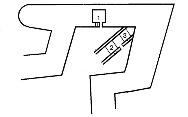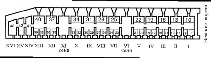 Три небольших каземата в Меншиковом бастионе с начала XIX в. использовались для содержания арестантов. Нумерация этих мест одиночного заключения показана на плане бастиона. (Подробно о нумерации камер см.: Вершевская М.?В. Указ. соч. С. 98–99.)