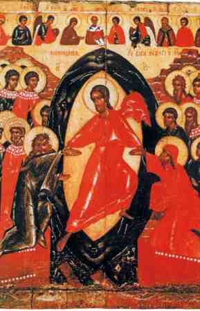 Рис. 2.16. «Сошествие во ад с избранными святыми». Русская икона конца XIV–XV века. Государственный Русский Музей. Взято из [745:1], с. 245, икона 498.