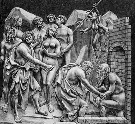 А Иероним говорит, что КОГДА ПИФАГОР СХОДИЛ В АИД, он видел там, как за россказни о богах душа Гесиода стонет, прикованная к медному столбу, а душа Гомера повешена на дереве среди змей, видел и наказания тем, кто не хотел жить со своими женами» [249:0], с. 336, 338.