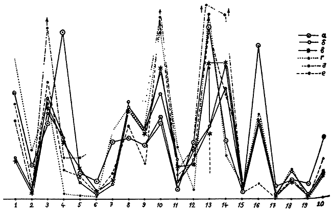 е) Наконец, для каждого римско-германского императора был вычислен объем его «биографии» в книге Кольрауша «История Германии» [415]. Получившаяся кривая показана на рис. 106 пунктирной линией. Здесь масштаб по вертикали сжат в 10 раз.