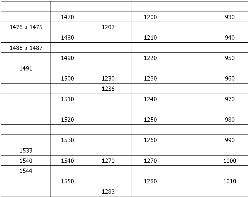Приведем таблицы солнечных и лунных затмений, составленные Н. А. Морозовым по русским летописям. Названия таблиц, данные самим Н.А. Морозовым, следующие: