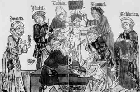 Рис. 1.75. «Ксилография. Тренто (Италия), 1475. История с изображенной здесь пыткой евреями ребенка-христианина (что якобы имело место) имела ужасные последствия для еврейских общин во многих странах» [643:2], с. 252, илл. 1.