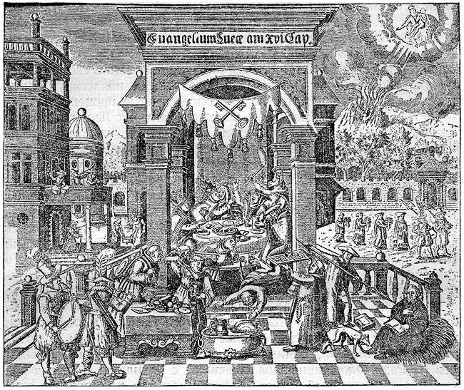 Рис. 156. «Карикатура» на разнузданную жизнь папы Льва X. Гравюра на меди XVI века. Взято из [492], с. 181.