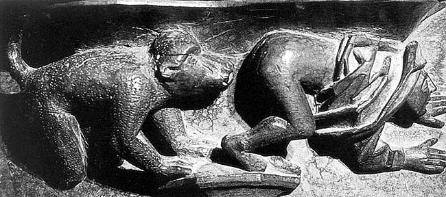 Рис. 160. Средневековые христианско-«вакхические» изображения, до сих пор сохраняющиеся в некоторых западноевропейских соборах. Например, молодая жена натягивает нос своему мужу. Скульптура на портале церкви Ploermel. Взято из [1064].