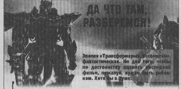 Кстати, сами американцы признали «Трансформеров» худшим фильмом полугодия. Что, впрочем, не слишком повлияло на его сборы…