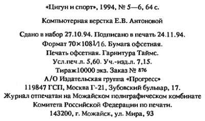 Адрес для писем: 117218 Москва, а/я 30 журнал «Цигун и спорт»