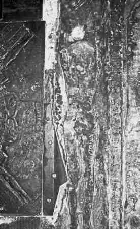 Рис. 6.90. Пустой картуш внизу правого столбца иероглифов сбоку от фигуры Нут. Здесь либо никогда не было надписей, либо они были тщательно зачищены. Египет, Дендерский храм. Фотография 2006 года.