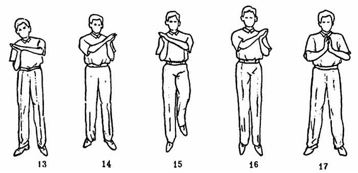 б) Даже после 3 — 5-минутного занятия нельзя переходить к другим делам без выполнения завершающего этапа. Если время занятия не превышает 20 минут, то можно соответственно сократить количество движений, выполняемых на завершающем этапе.