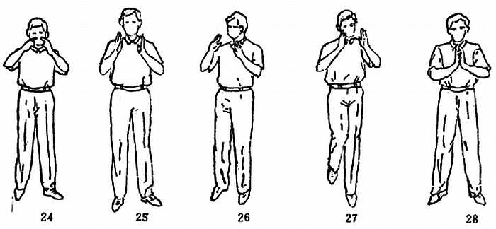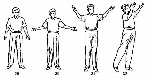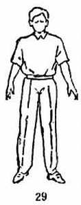 Руки свободно опущены вниз ладонями внутрь. Слегка потрясите пальцами (рис. 29).